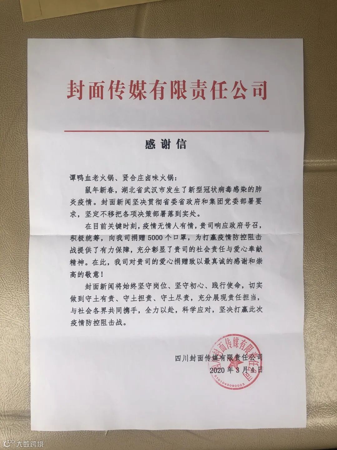 向战斗在一线的医疗人员捐赠紧急防疫物资后,谭鸭血和贤合庄的员工们,再向川内的一线媒体记者捐赠2.5万个防疫口罩!