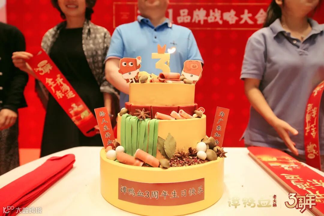 更有「谭鸭血」3周年定制“火锅蛋糕”