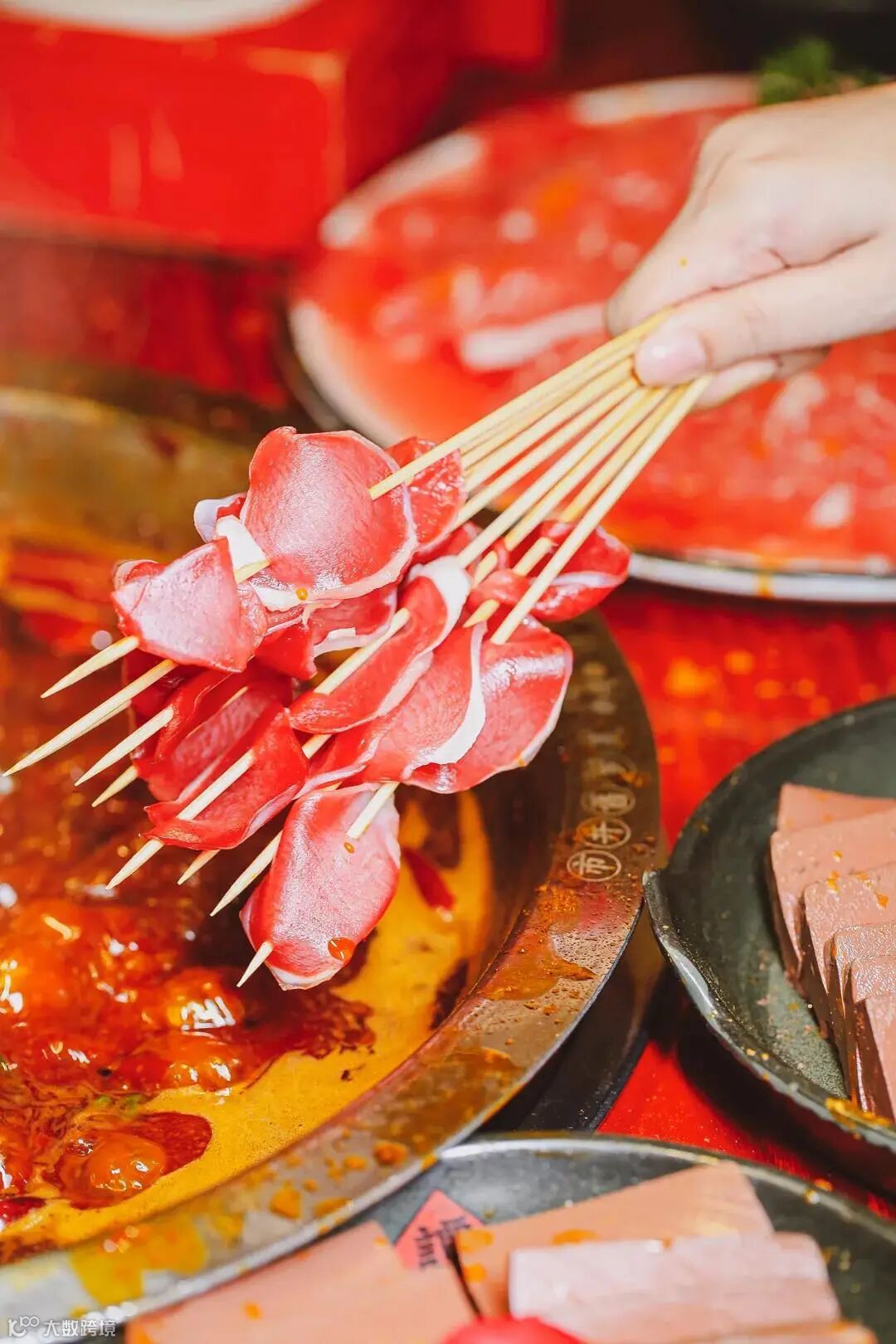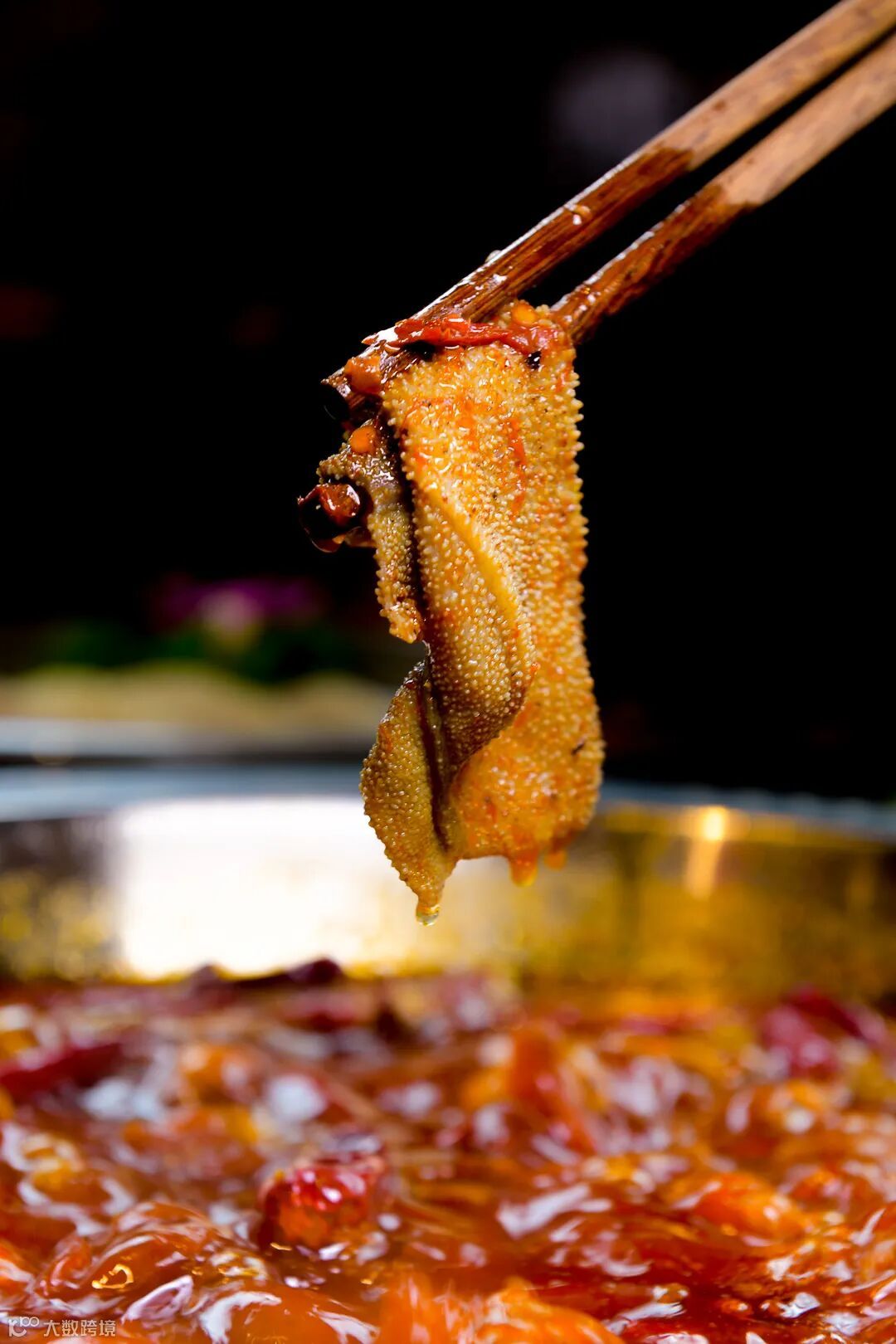 鲜嫩毛肚裹着麻辣汤汁