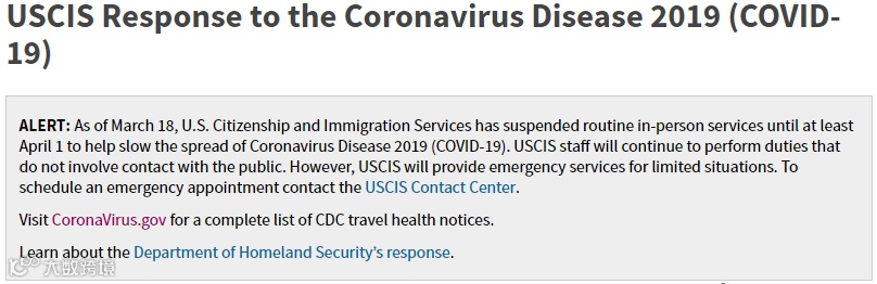 美国移民局将于3月18日-4月1日暂时关闭 -