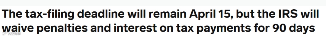 但需要向IRS补税的个人和公司可延迟90天补税,不用多交利息和罚款 -