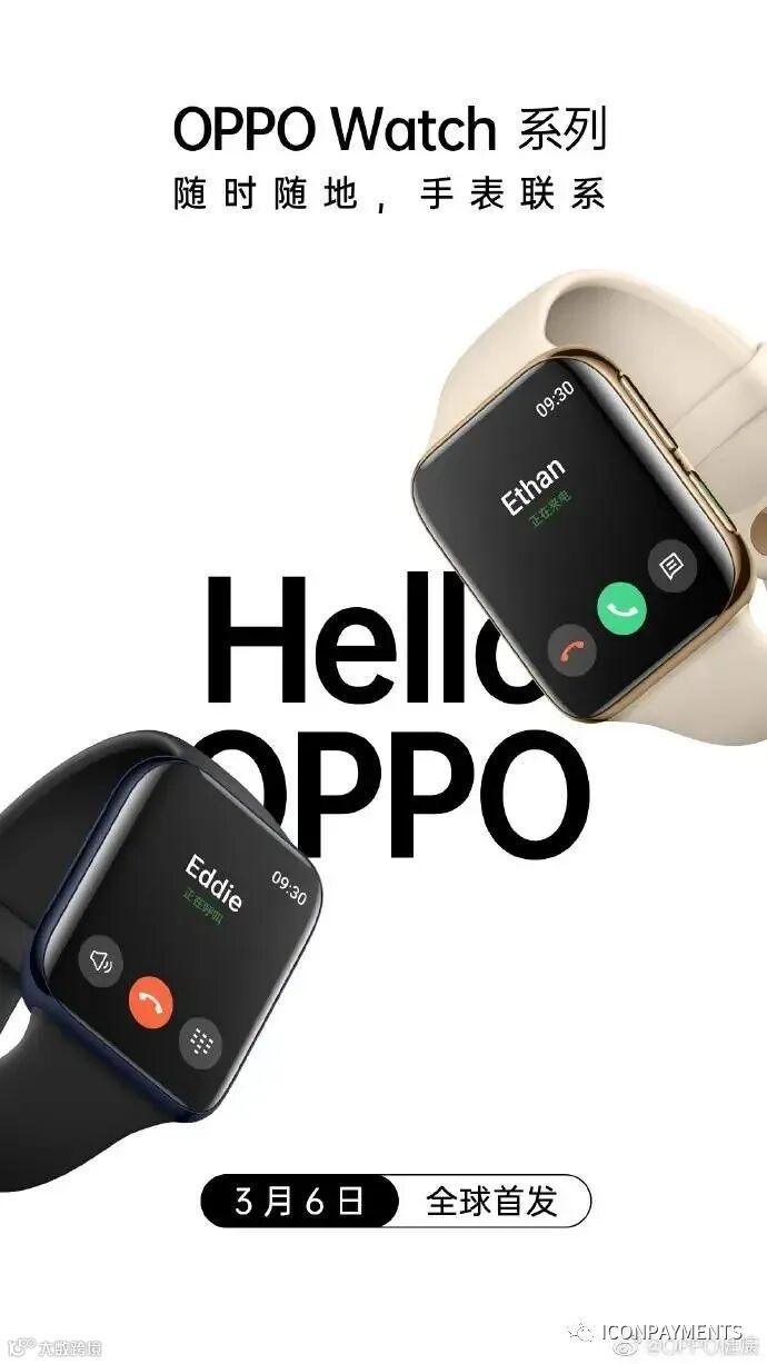 OPPO 官方微博宣布,将于 3 月 6 日发布智能手表 OPPO Watch。届时,OPPO 也将发布 OPPO Find X2。