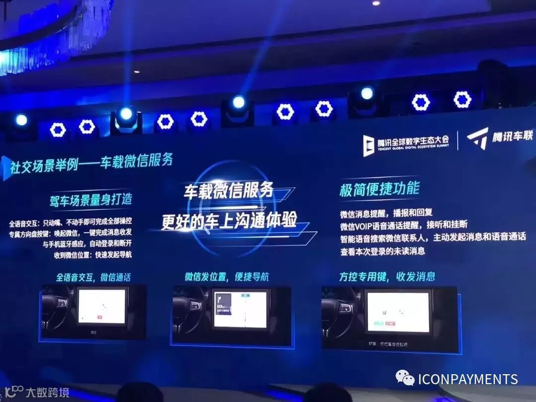 昨日在腾讯全球数字生态大会现场,腾讯车联副总裁钟学丹正式发布车载微信,预计年内落地。据介绍,车载微信服务为驾车场景量身打造,可以实现全语音交互、方向盘按键唤起微信、通过微信位置发起导航等功能。