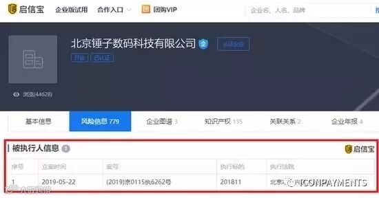 昨天下午,启信宝显示,北京锤子数码科技有限公司于 5 月 22 日成被执行人,执行法院为北京市大兴区人民法院,执行标的 201811。目前,该公司是由由锤子科技(北京)股份有限公司百分百持股。2018 年 12 月 5 日,罗永浩不再担任北京锤子数码科技法定代表人,由温洪喜接任,目前罗永浩还是公司的执行董事。