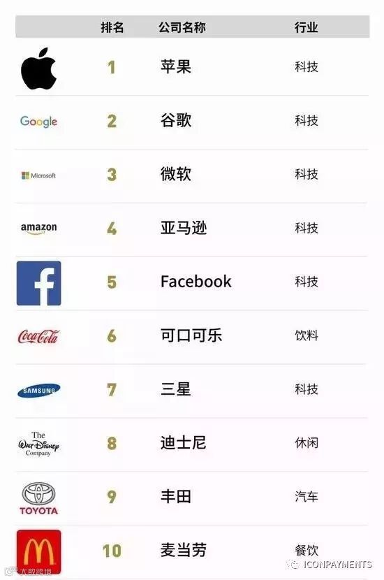 🔶福布斯发布 2019 全球品牌价值 100 强