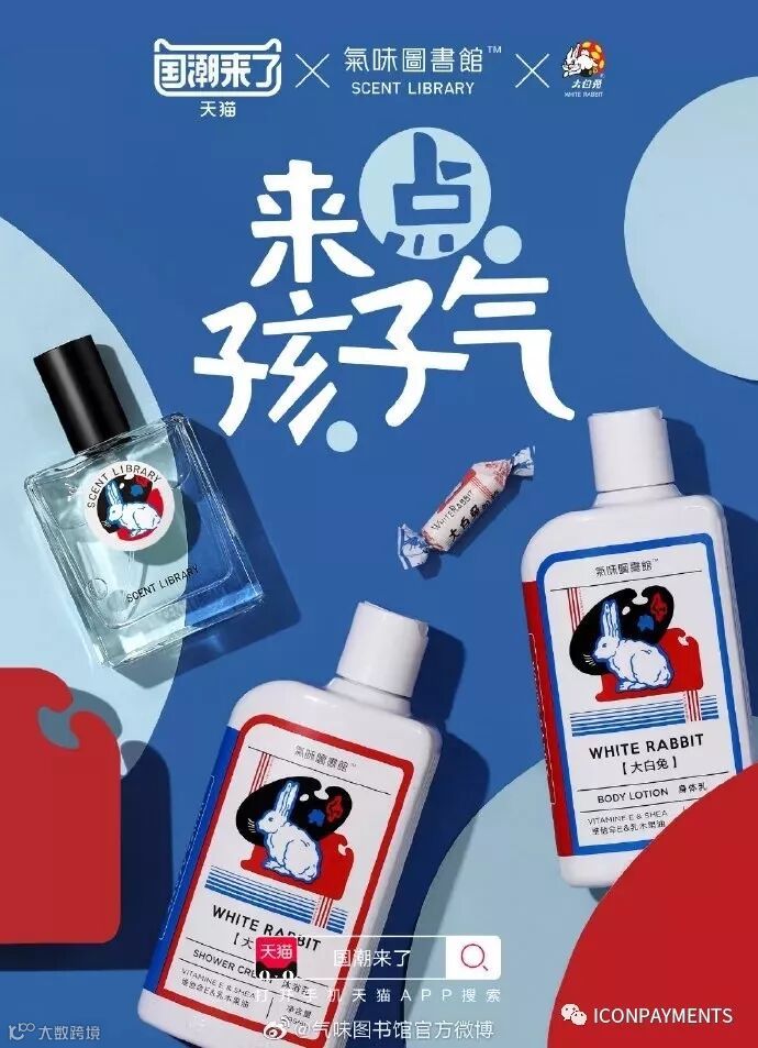大白兔近日跟气味图书馆合作,以「快乐童年」为主题,推出奶糖味香水、沐浴露、身体乳、护手霜等一系列香氛产品,目前已经在天猫平台和线下门店发售。