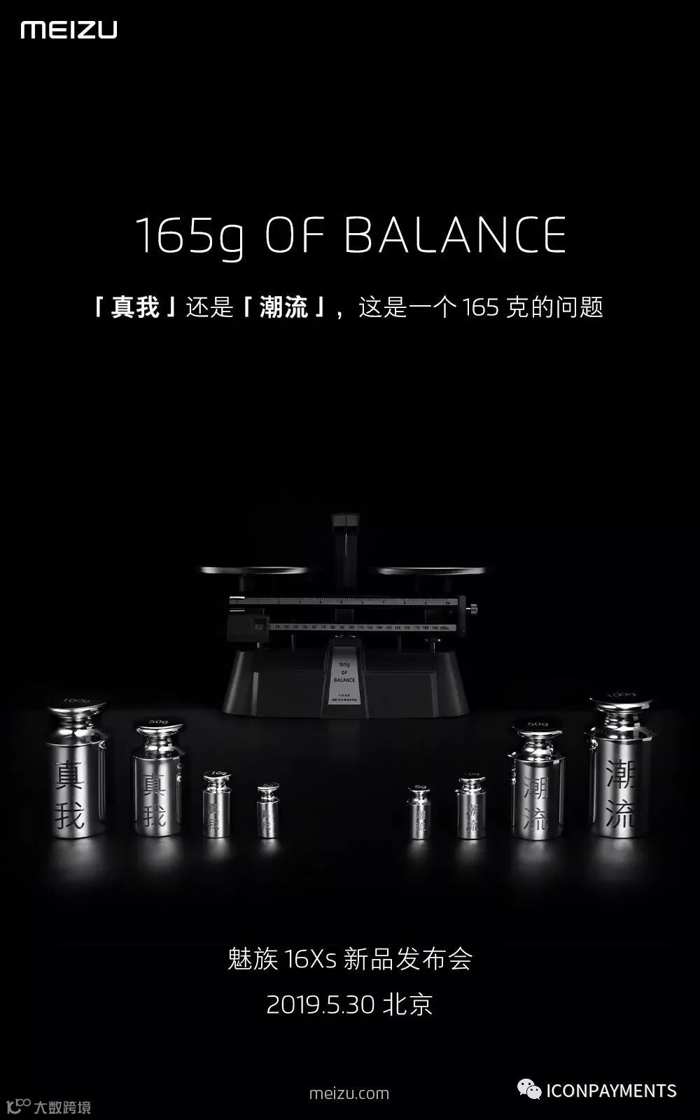 魅族近日发出新品发布会邀请函,确定发布日期为 5 月 30 日,邀请函是一套「165 克的平衡」天平和两组分别刻有「真我」和「潮流」字样的砝码。165 克应该就是新机重量。从此前曝光消息看,魅族 16Xs 将沿用魅族 16 系列的无刘海设计,配备 6.2 英寸 AMOLED 屏幕,后置三摄(4800 万像素 + 800 万像素 + 500 万像素),电池容量为 3900mAh。