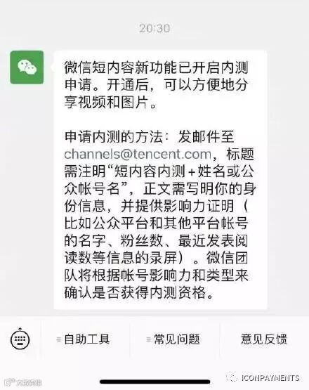 🔶微信官方:短内容新功能已开启内测申请