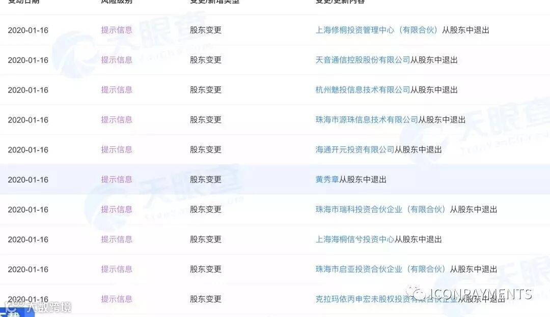 根据天眼查数据显示,1 月 16 日,珠海市魅族科技有限公司 11 家股东从股东中退出,其中包括魅族创始人、董事长黄章(真名黄秀章)。此举通常意味着公司会发生很大变化,所以迅速成为广大网友关注的热点。魅族科技方面目前已发表声明,否认黄章退出股东行列,称「目前魅族没有任何股权变更,只是平台的信息有误了,我们也在积极沟通平台处理修改更正。」