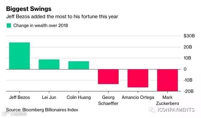 据彭博社富豪榜统计,2018 年全球财富增长最多的人是亚马逊创始人贝索斯,其净资产增加了 240 亿美元,这是他连续第二年位居榜首了。