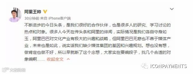 🔶阿里王帅否认参与今日头条融资:阿里无意也不善于媒体产业