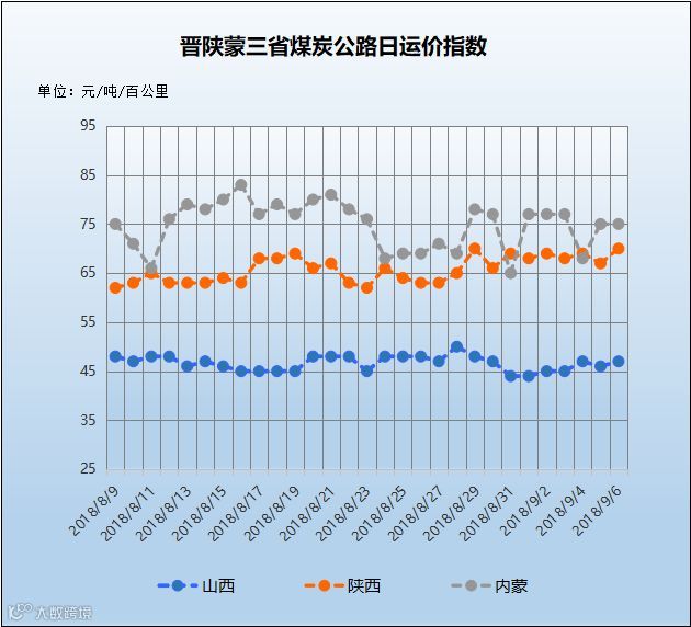 【陕西省】受环保检查影响,停产煤矿较多,在产煤矿拉煤车较多加上近日下游开始采购冬储煤,陕西地区运价小幅上涨1-10元/吨左右。