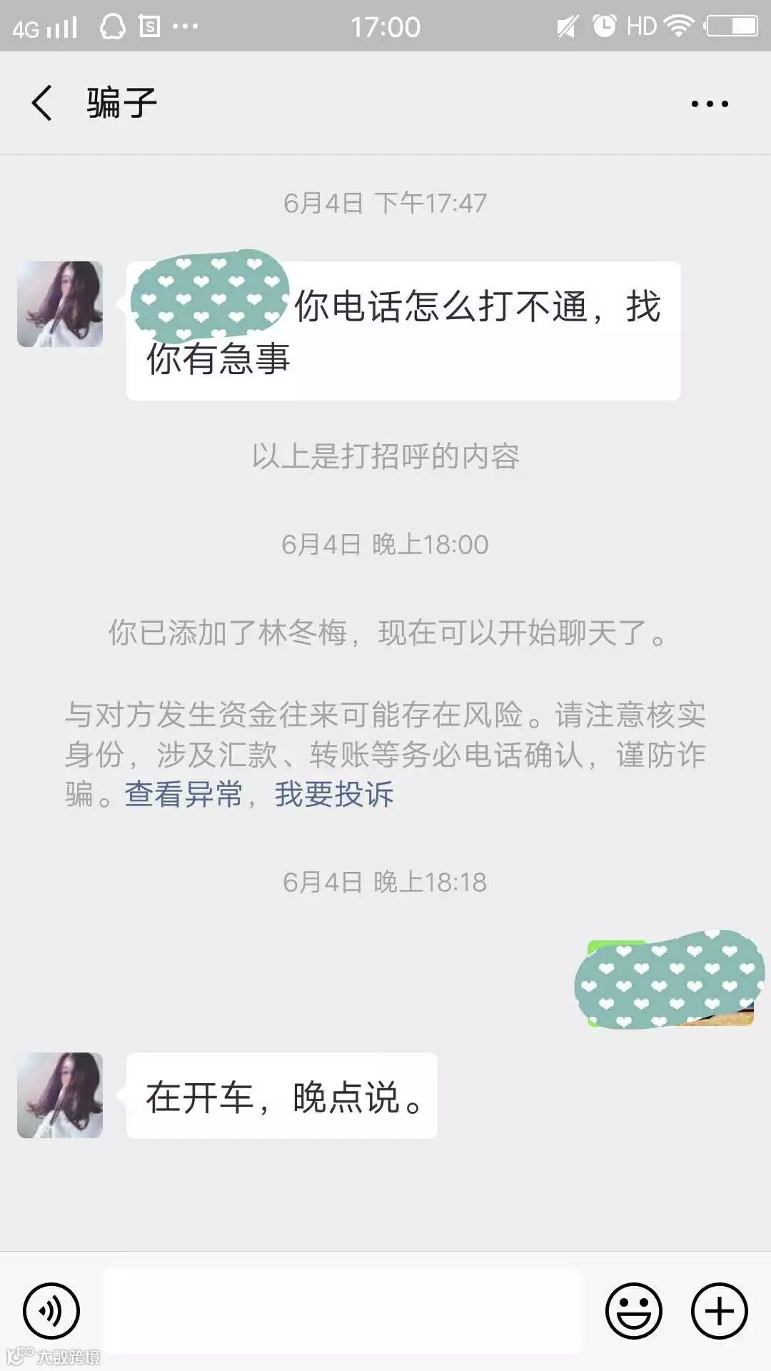 添加好友成功后,对方回复“在开车,晚点说”后,就再没了下文。