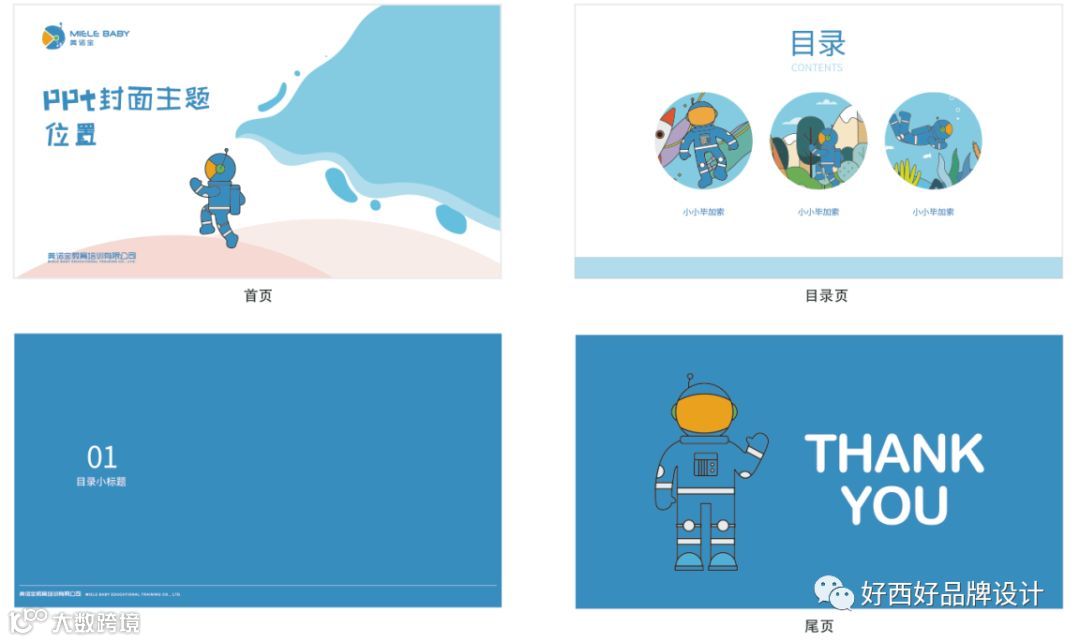 星球、海洋、天空……插画均以探索为主题,符合我们为美诺宝设计的slogan:探索未知潜能,开启智趣未来。
