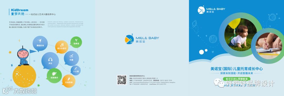 基于“探索未知潜能,开启智趣未来”的品牌定位,我们为美诺宝国际教育成长中心提供了系统性的视觉服务,完成了从品牌命名到品牌整体形象体系与价值体系的塑造。