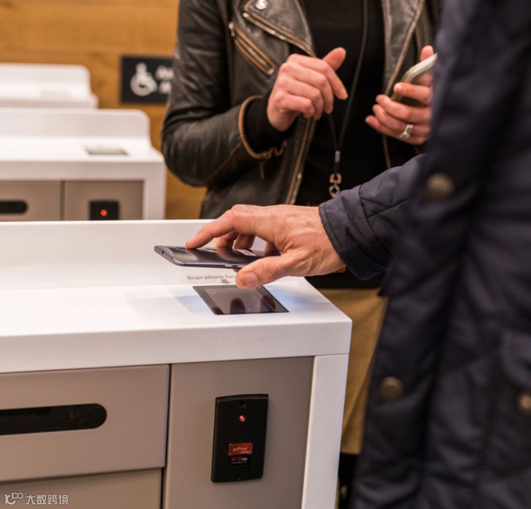 超市的入口感觉就好像你正在进入一个地铁站,一排电子大门位于商店的入口,被只允许拥有该商店智能手机应用的人进入。