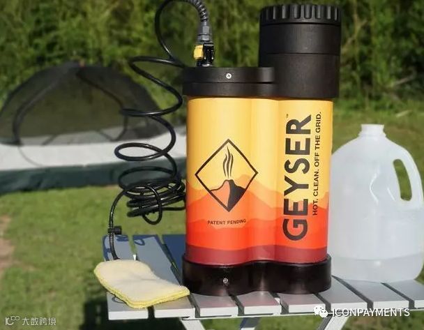 国外有公司研发了这样一款奇特产品Geyser,可以让人们在户外探险露营的同时也能舒服的洗个热水澡。跟家用热水器动辄40L-50L的容积肯定没法相比。这款设备重量约5公斤,高度30厘米,在做到了尽可能迷你的同时,其肚量仍可以加热约4升水。