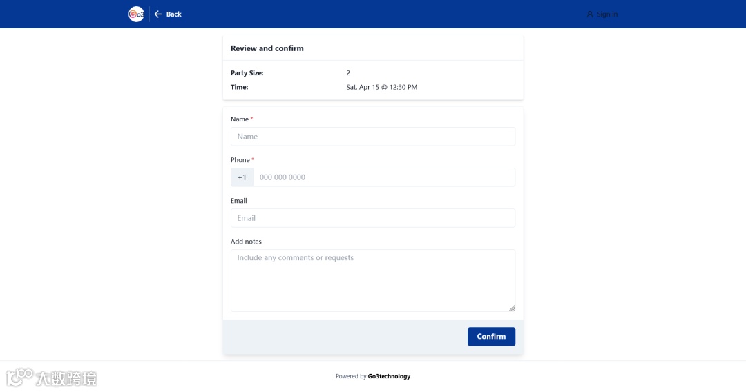 餐饮商家则可以根据顾客人数来设置不同的订座选项,譬如说为五人以上的预约提供大桌,五人以下提供小桌。而已经到店的客人则可以在网页内加入 Go3Booking 等位排队列表,系统将自动更新排在客人前的等待人数,方便客人动态掌握自己的排队时长。