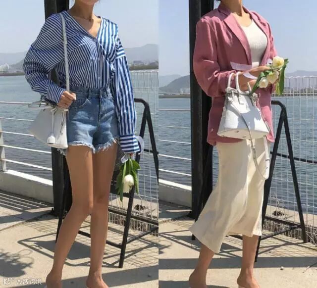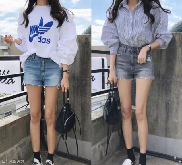 牛仔短裤也是这个季节的散热神器,相信很多小姐姐都会穿搭,一件白色韩版T恤搭配一条蓝色牛仔短裤,把T恤稍微做点装饰,塞进短裤里,这样搭配方法会给人很舒适的既视感,上衣的白色一方面能凸显皮肤白,另一方面白色能反光,散热功能比较好,搭配短裤还能突出你的大长腿,显高显瘦。