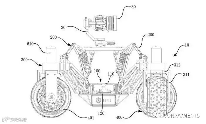 IT 之家消息,大疆一项名为「Vehicle」新专利曝光。据文件描述,这是一款顶部装有摄像头的机动漫游车,可能将适用于越野,搭载了一系列减震设计。