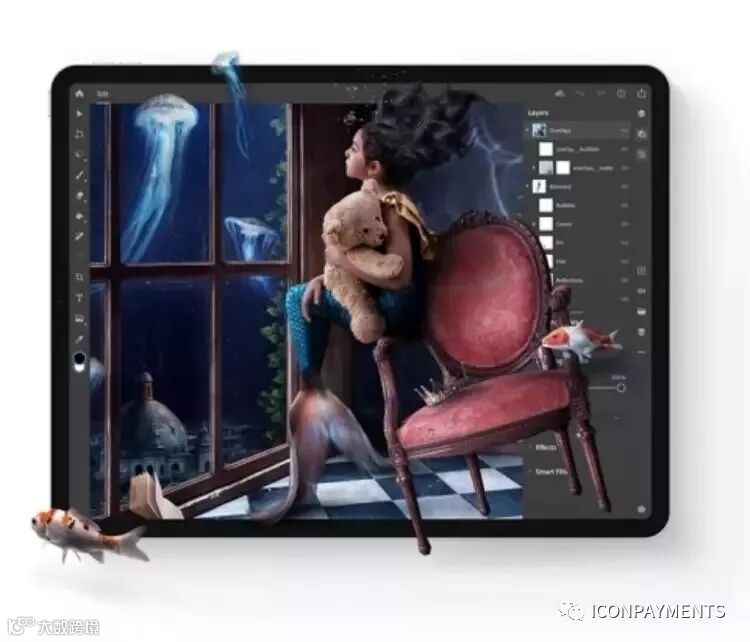 Apple World Today 消息,Adobe 在 Adobe MAX 上正式发布了 iPad 版 Photoshop。最早于 MAX 2018 上展示,iPad 版 Photoshop 带来了更高生产力,支持 PSD 互动操作,从云端提取文件等功能。此外,Adobe 还展示预览了 iPad 版的 Illustrator 和 Photoshop Camera。