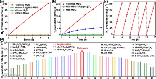图4. Ru@MoS-MBIZ的光催化氢析出活性表征