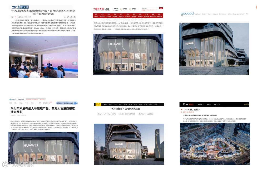 与此同时,该项目也荣登ArchDaily、Dezeen、Archilovers、Designboom、Archinect、gooood等多个国际建筑与设计平台,获得业内高度关注。这不仅肯定了华为在空间体验维度的探索突破,也彰显了朗涛将品牌理念落地为情感空间体验的设计实力。