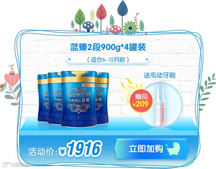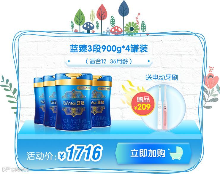 购买蓝臻2段900g(4罐装)和3段900g(4罐装)就可以获赠电动牙刷一只