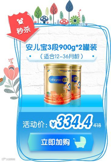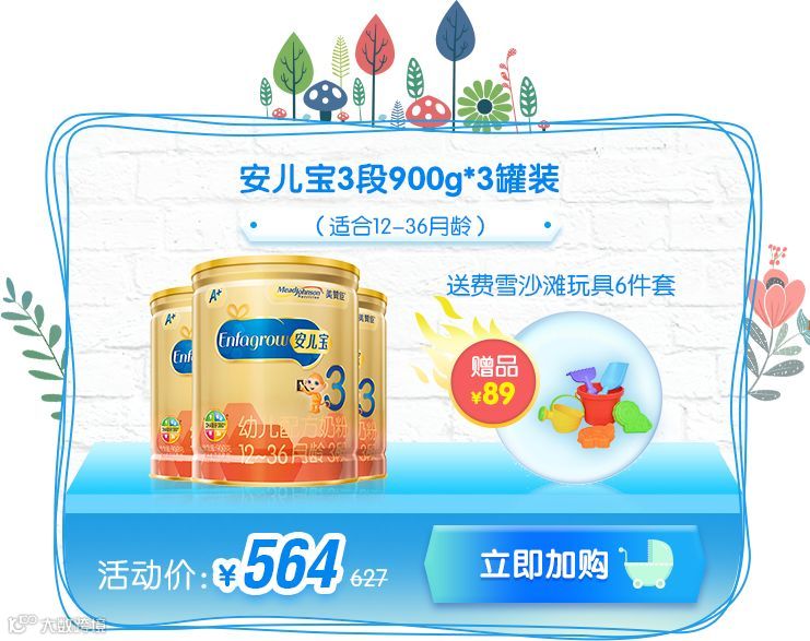 购买安儿宝2段900g(3罐装)和3段900g(3罐装)就可以获赠费雪沙滩玩具一套