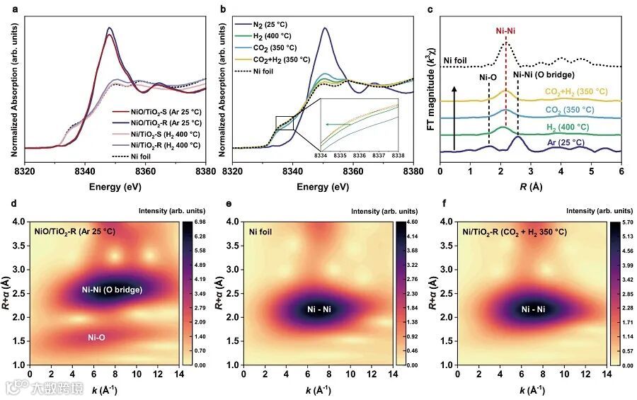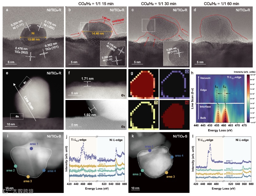 图2. Ni/TiO2催化剂在CO2/H2下的结构演变