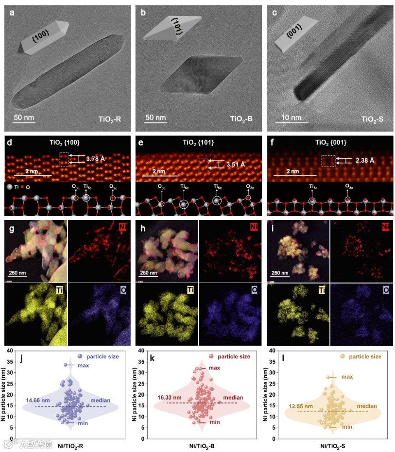 为攻克这一难题,研究团队精准制备了三种暴露主要晶面分别为{001}、{100}和{101}的二氧化钛载体,并负载了镍纳米颗粒,构建了理想的模型催化体系。