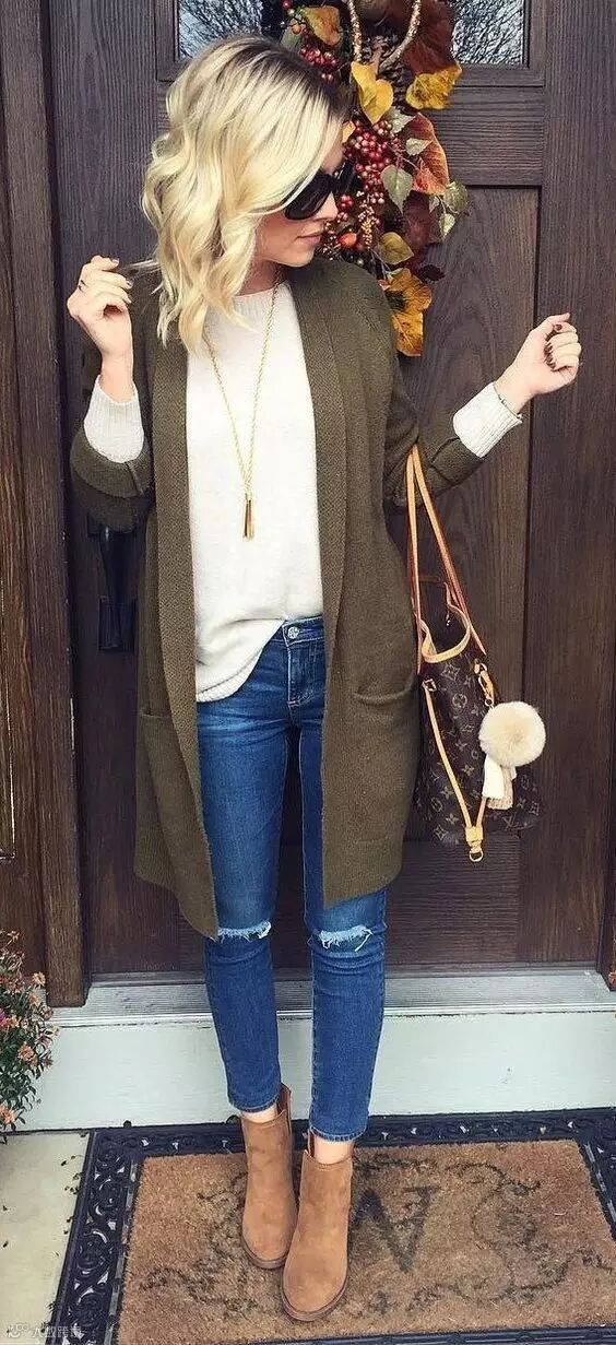 “每当我决定穿牛仔裤去办公室时,我都会选择固定的三件套组合: