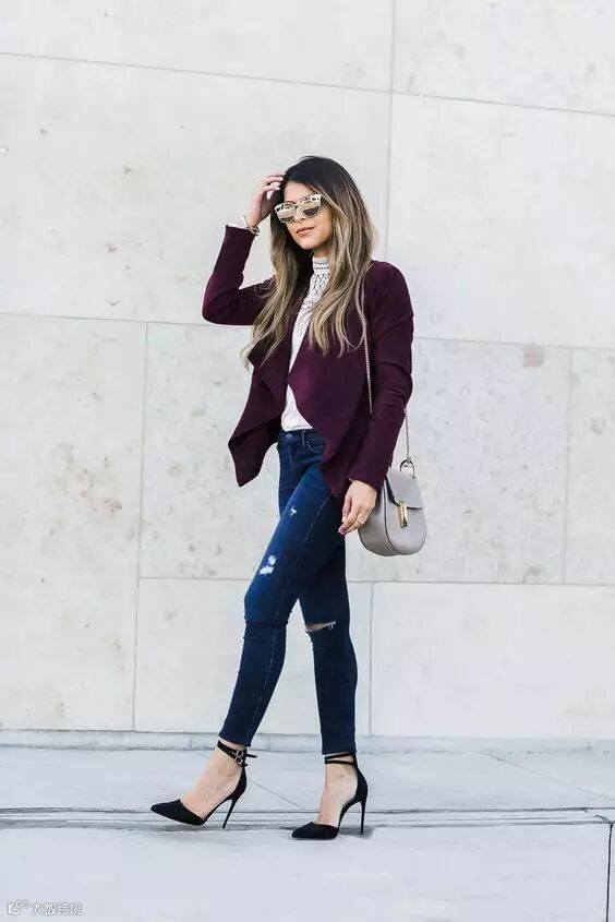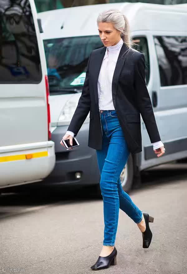 “我最喜欢的牛仔裤职场穿搭不属于夸张的类型,蓝色西装外套,百搭的黑色牛仔裤,一双浅色的鞋子,显得整个人不会太重,然后再加上一两件精致的首饰点缀,就会使牛仔裤LOOK变得特别起来,同时还能兼具专业性。”