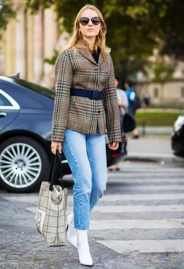 “西装式的夹克是让休闲LOOK变成职场LOOK最好的办法,尤其是这种格纹款式的夹克,我就特别推荐给大家,它不仅自带威严感还很有复古怀旧的感觉,是时下最流行的印花趋势。”