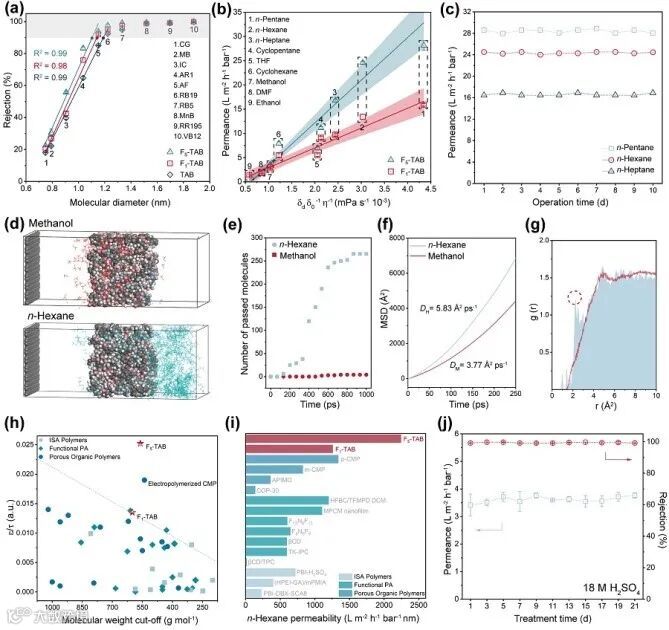 图3. Fx-CMP膜的分离与有机溶剂传输行为