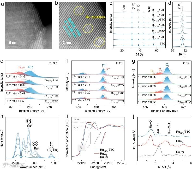 图2. Ru1.2%/BTO的形貌和结构表征。