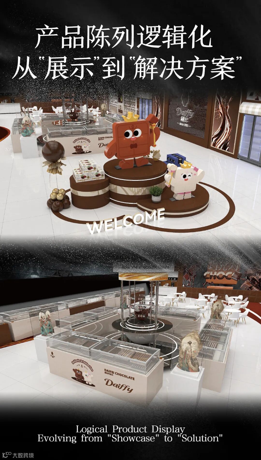 沉浸式氛围:结合深棕色主色调、暖色灯光与金色点缀,营造出温馨、甜蜜且高贵的“巧克力殿堂”氛围。