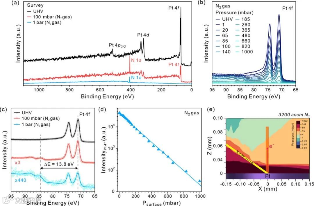 图 6:从 UHV 到 1 bar N2 环境下的原位 XPS 表征。