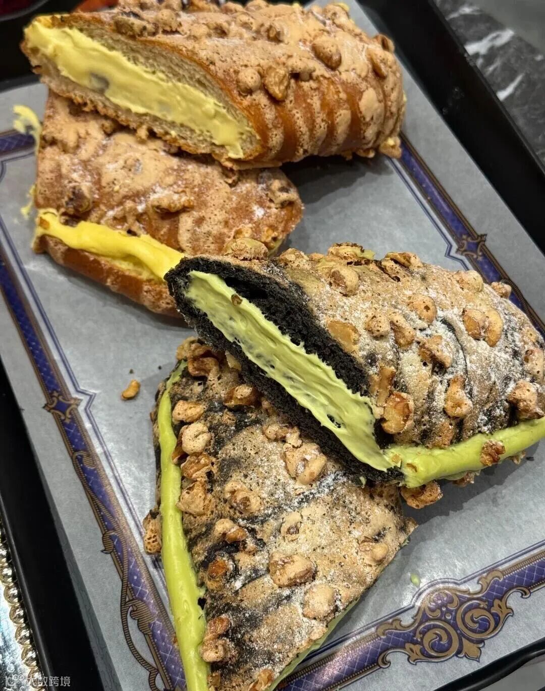 高颜值创意甜品:如开心果挞、草莓蛋糕泡芙、车轮泡芙等,注重造型设计与口感层次,兼顾打卡属性与味觉体验。