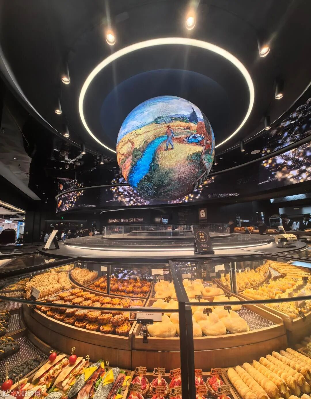 透明厨房是当代消费的「神圣祭坛」:发酵箱吞吐麦香如晨祷,LED球屏投映面团呼吸节律。在这里,技术是新的仪式感,围观制作即参与一场舌尖宗教的诞生
