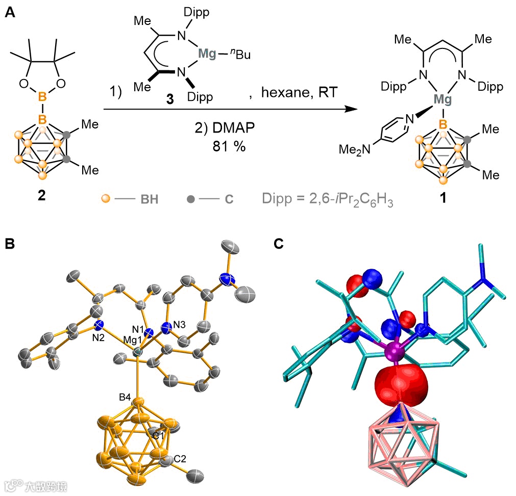 图2. 碳硼烷笼硼-镁试剂的合成及其结构