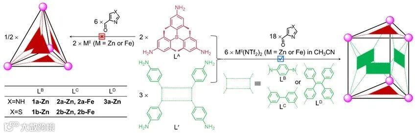 方案1. 异配体三棱柱笼的合成策略。图片来源:J. Am. Chem. Soc.