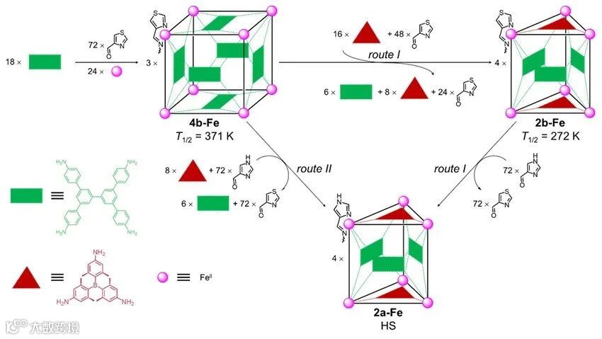 方案4. 4b-Fe、2b-Fe与2a-Fe之间的笼-笼转变及自旋态切换。图片来源:J. Am. Chem. Soc.