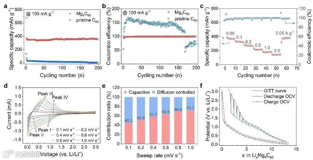 图3. Mg4C60的电化学性能表现
