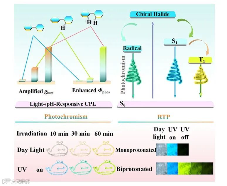 总之,这些OIMHs化合物集结构相变、光致变色、室温磷光与圆偏振室温磷光(CPRTP)于一身,在防伪和编码领域展现出潜在应用价值。这项工作为开发具有集成式刺激响应性CPL的OIMHs开发提供了参考。