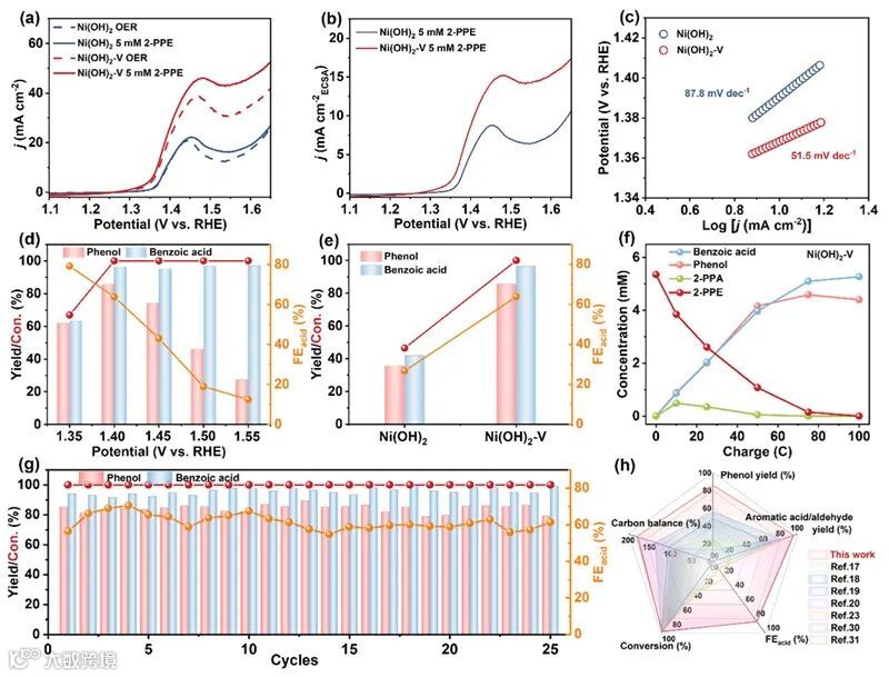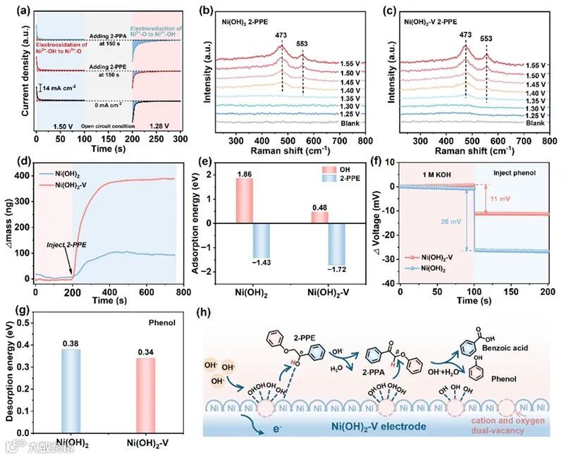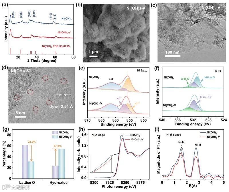 该团队通过多种先进表征技术,系统解析了Ni(OH)2-V催化剂的微观结构,证实了阳离子和氧双空位的成功引入。