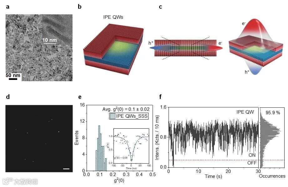 图1.该二维量子阱的结构特性及其单光子发射特性表征。