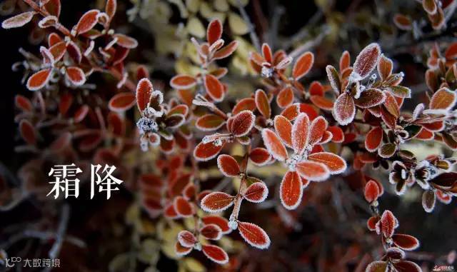 霜降,是二十四节气中的第十八个节气,也是秋季的最后一个节气。它虽然在二十四节气中显得平凡普通,但却引发了文人墨客的无限感慨——“枯草霜花白,寒窗月新影”“秋深山有骨,霜降水无痕”……那些生动传神的笔触,入木三分地描述了霜降时节的气候特色。