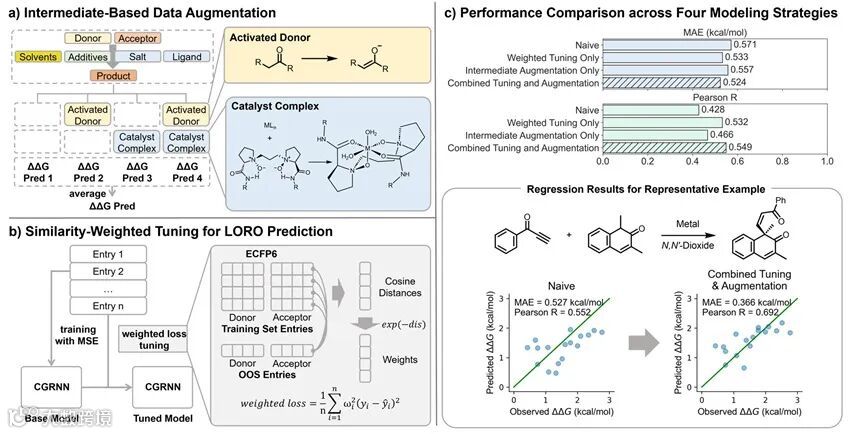 基于中间体的数据增强(Intermediate-Based Data Augmentation):将原本独立的催化剂和底物输入转化为具有催化活性的金属-配体配合物及活化底物中间体,增强了模型对化学机理的感知能力。