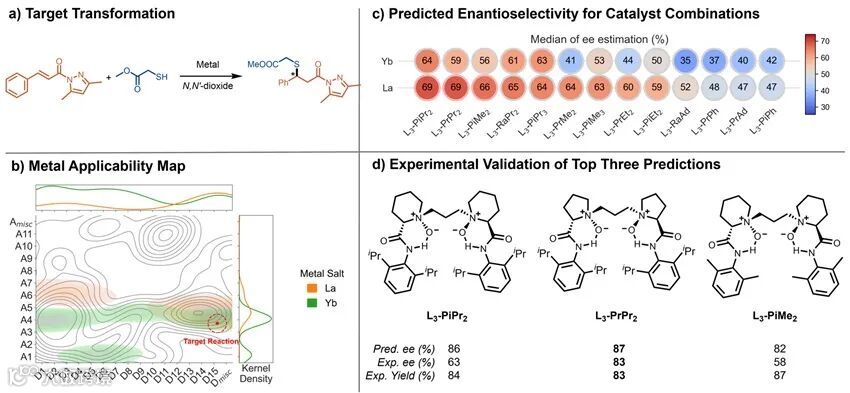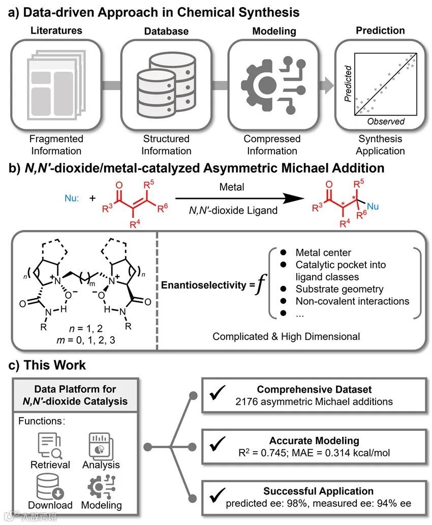 图1. 用于手性双氮氧/金属催化不对称迈克尔加成的数据驱动集成平台